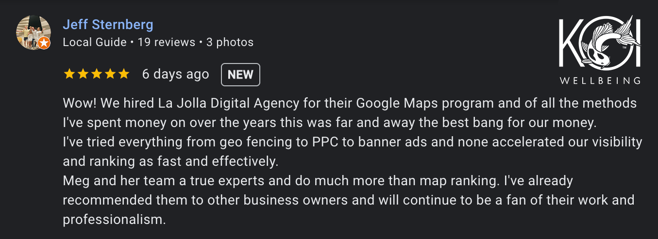 When KOI Wellbeing first joined our Midas Local SEO program, they were struggling to pull clients from outside the La Jolla area. They had a solid foundation of SEO on their Google Business Profile and website, but their business lacked the necessary signals Google relies on to determine local rankings.