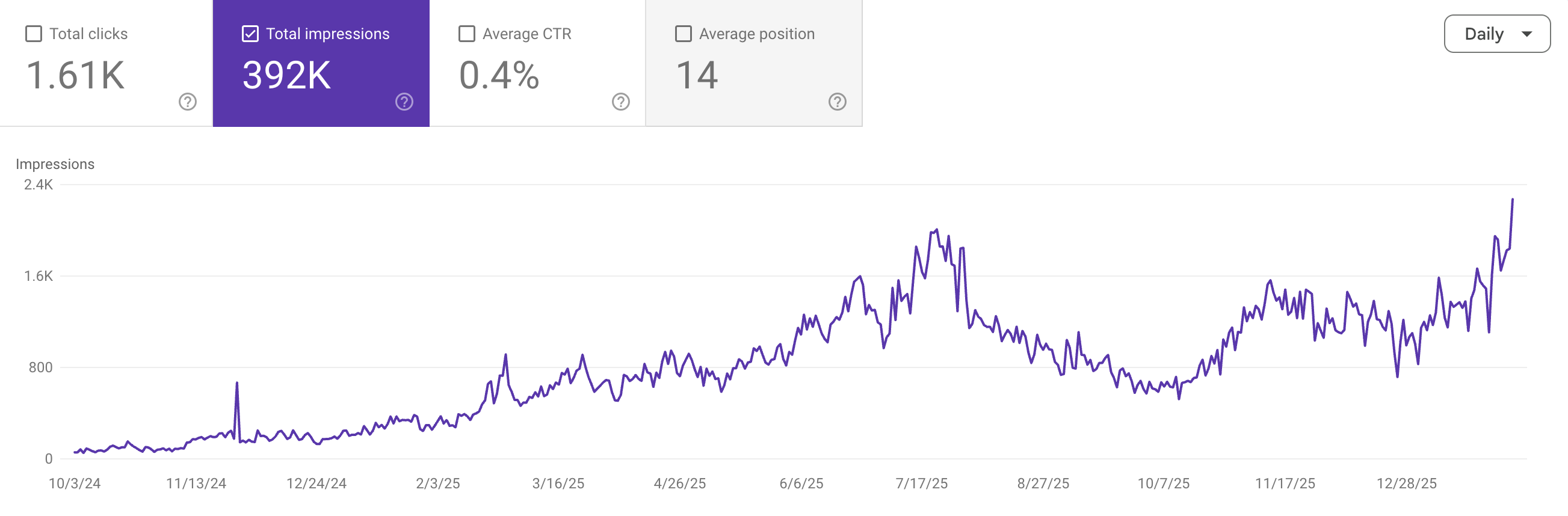 When we began working with mobile mechanic 'Mobi Mechanix,' we were starting from scratch. After building him a beautiful and responsive website, we got to work optimizing his website for search engines and creating engaging content. In just one month, he went from having zero impressions in the SERPs to nearly 400 impressions!